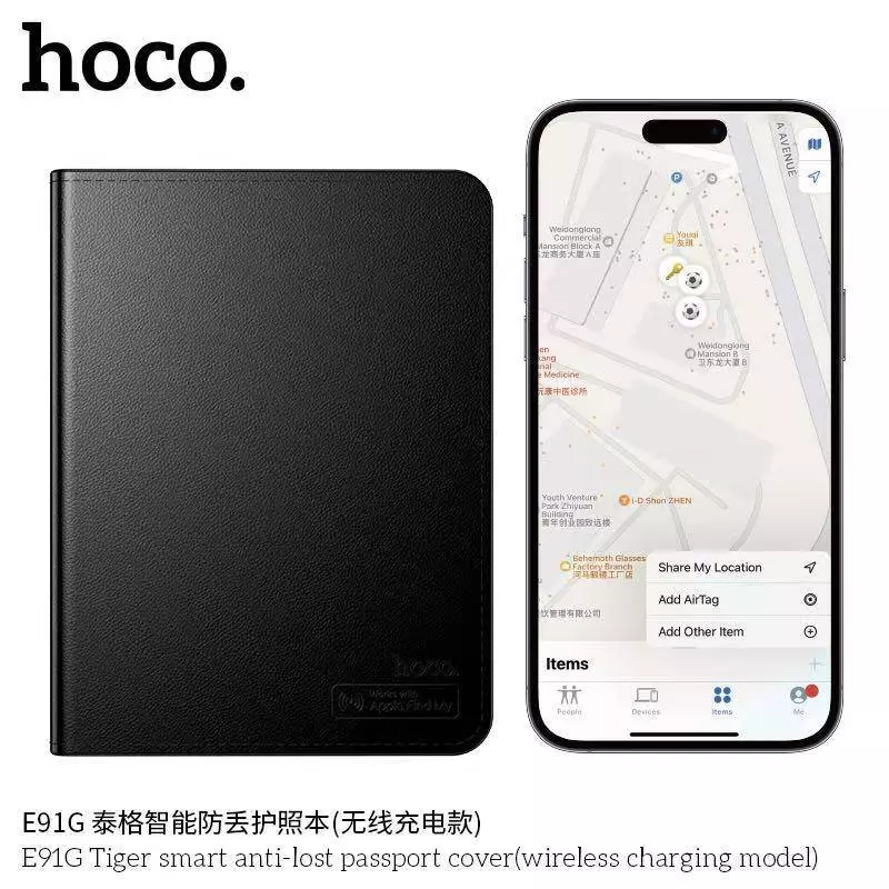Hoco E91G Tiger Anti-Lost Smart Passport Cover (Wireless Charging Model)