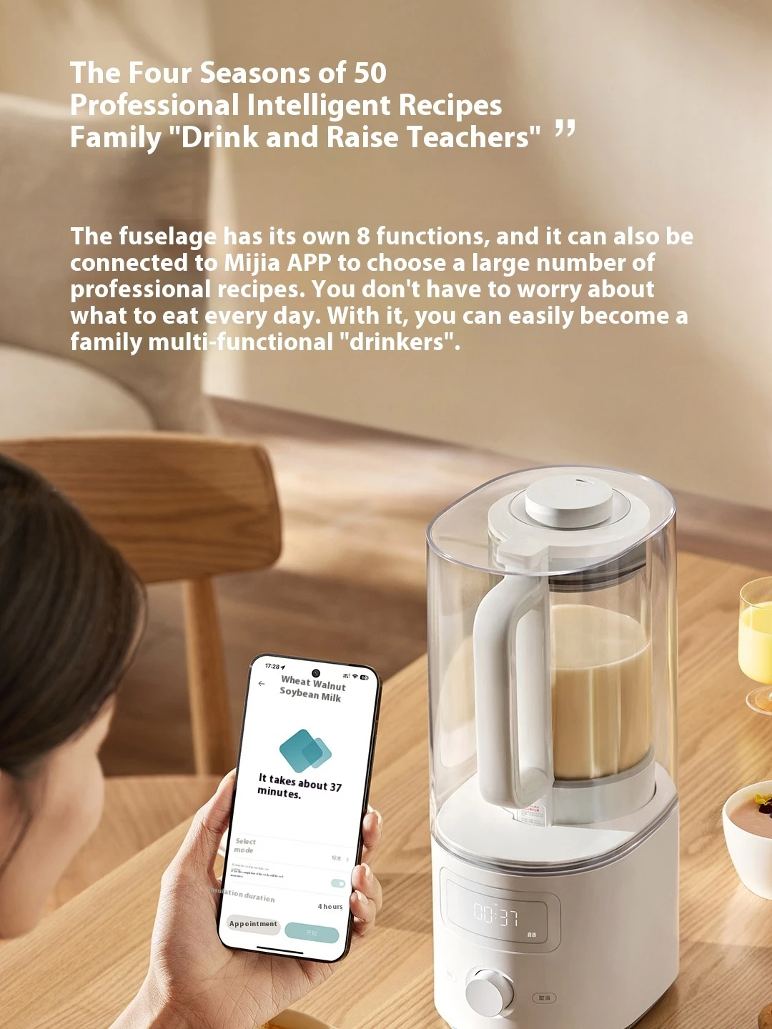 The smart app control via MiHome App allows you to operate the blender remotely, customize recipes, and schedule preparation. You can prepare fresh soy milk in just 18 minutes without pre-soaking, making it a convenient choice for busy lifestyles.