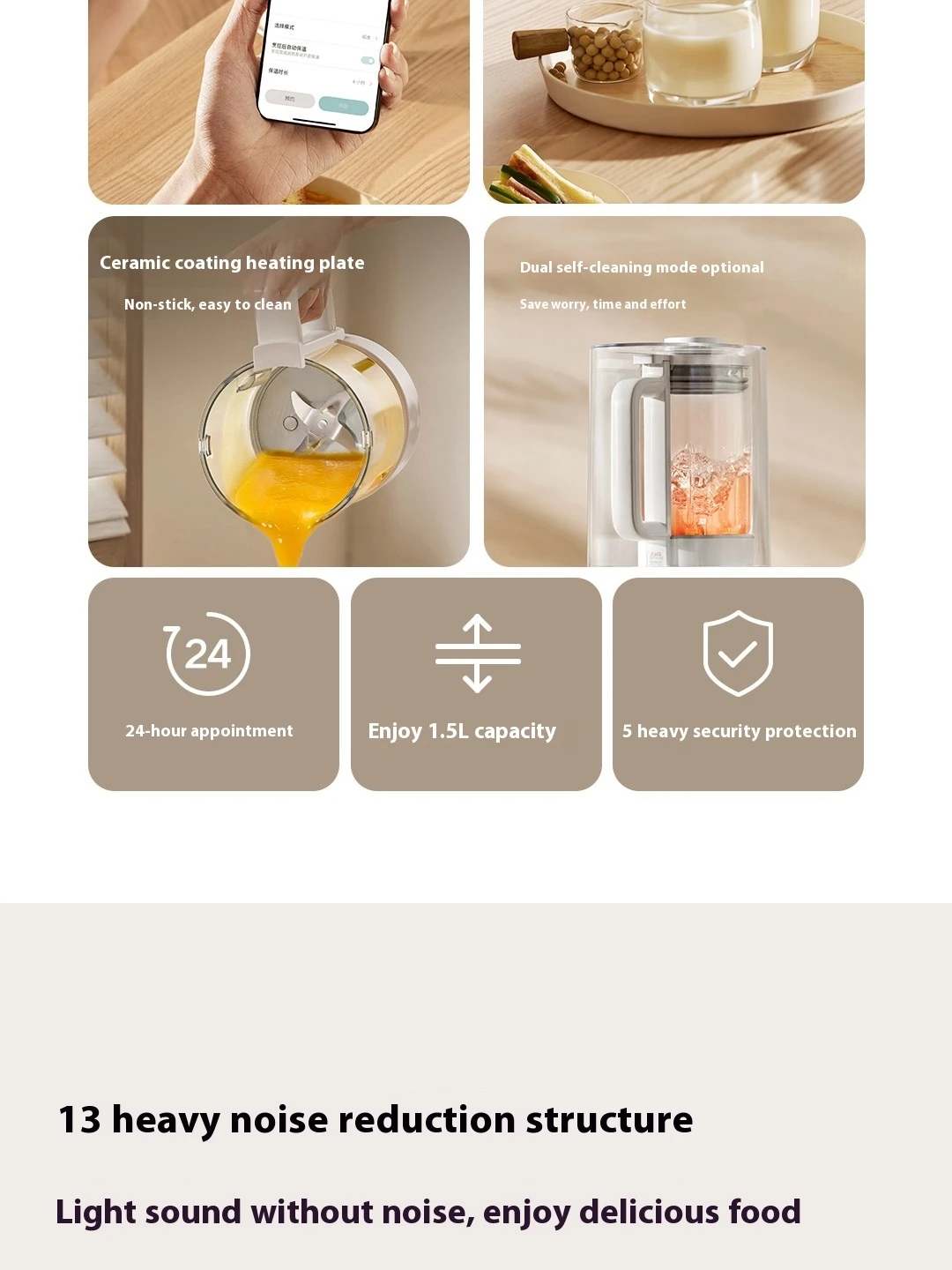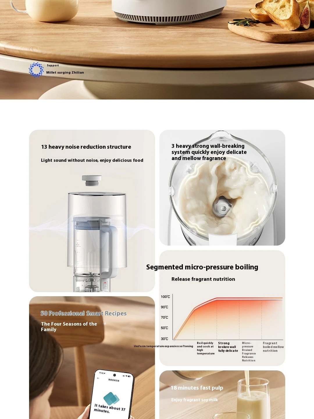 | Functions | Quiet blending, heating, self-cleaning, micro-pressure boiling |
