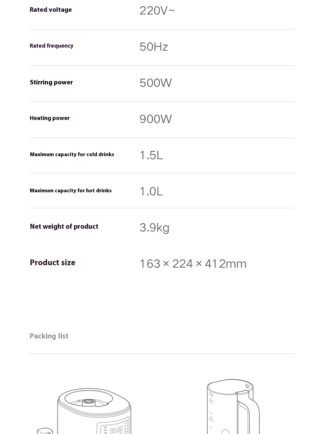 - Blending Power: 500W | Heating Power: 900W