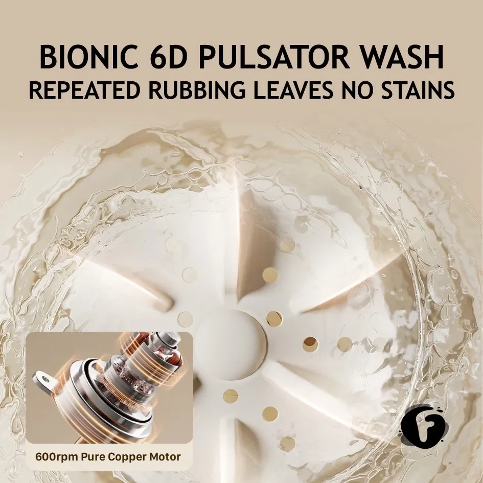 The advanced 6-dimensional impeller system provides 360° forward and reverse washing action, helping to remove dirt effectively while reducing clothing entanglement. Its 660r/min DC pure copper motor ensures efficient cleaning with reduced vibration and low noise.