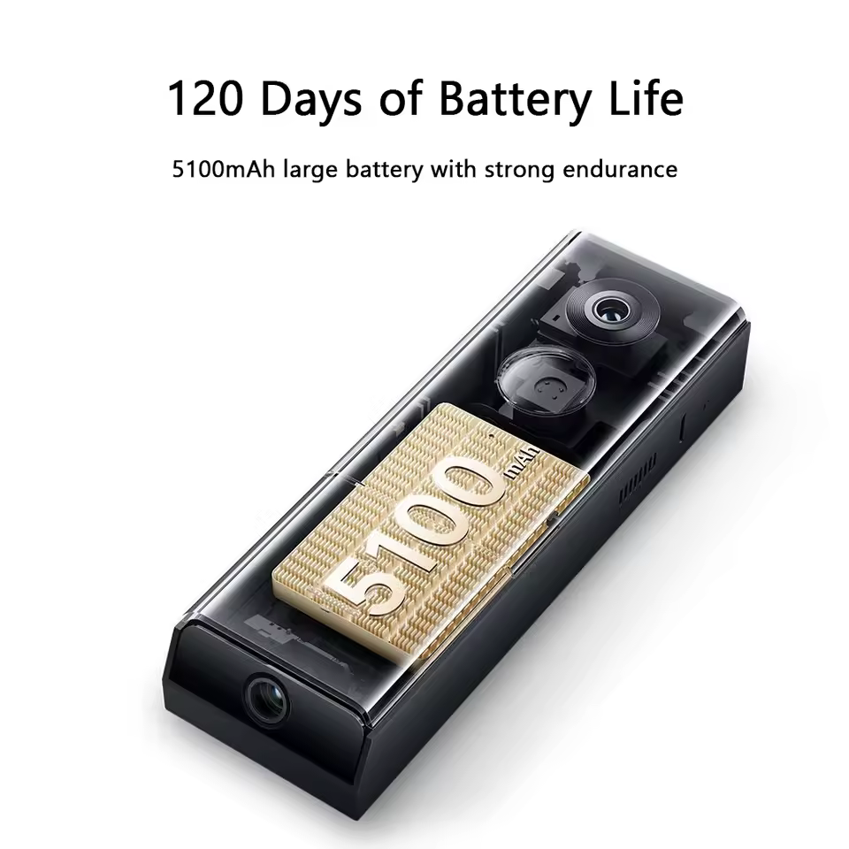 Battery life varies depending on motion detection frequency and recording settings, but the 5100mAh battery is optimized for long-lasting use.